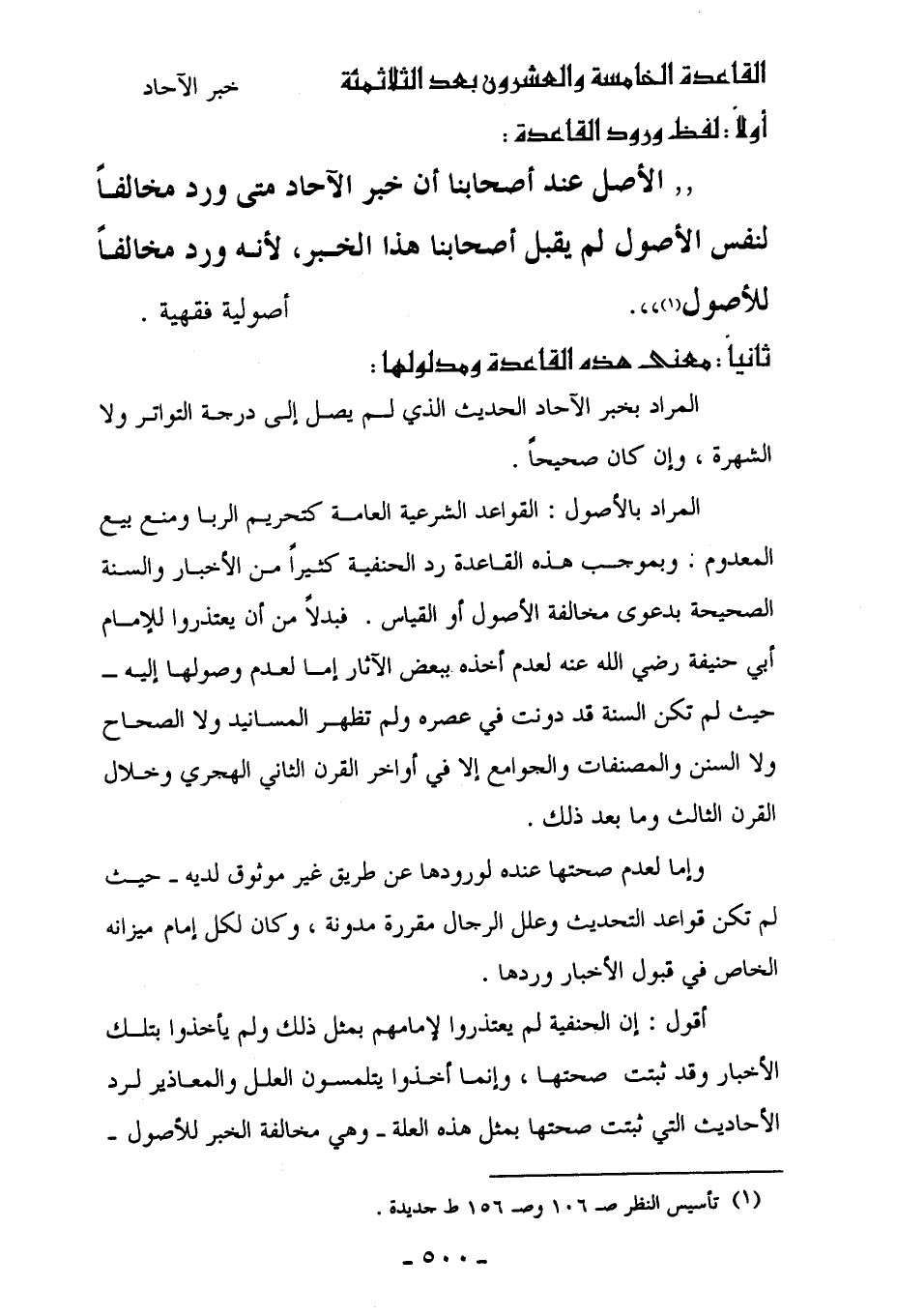 القاعدة الخامسة والعشرون بعد الثلاثمئة [خبر الآحاد]
