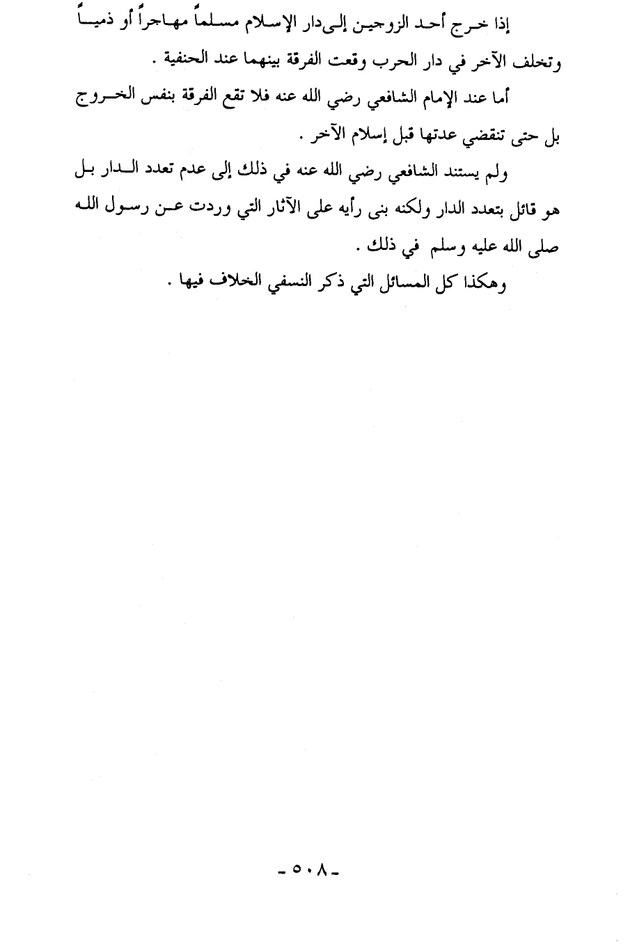 ولم يستند الشافعي رضي الله عنه في ذلك إلى عدم تعدد الدار بل هو قائل بتعدد الدار ولكنه بنى رأيه على الآثار التي وردت عن رسول الله صلى الله عليه وسلم في ذلك.