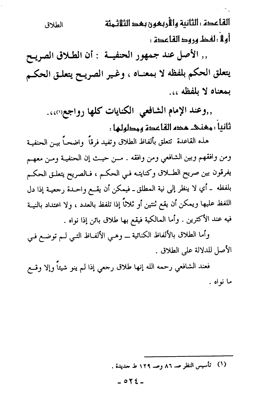 " الأصل عند جمهور الحنفية: أن الطلاق الصريح يتعلق الحكم بلفظه لا بمعناه، وغير الصريح يتعلق الحكم بمعناه لا بلفظه".
