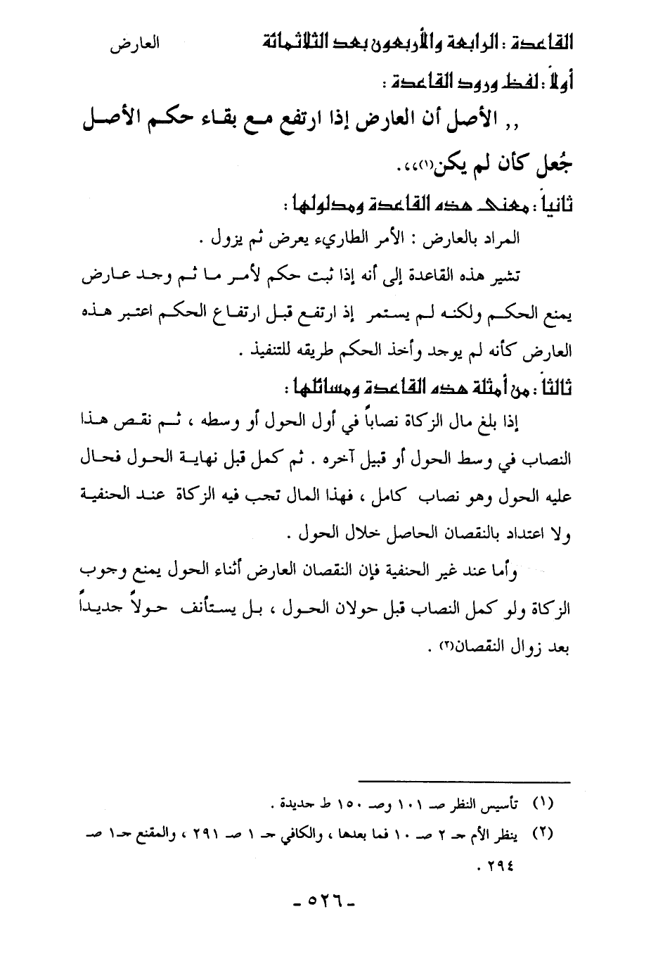 القاعدة: الرابعة والأربعون بعد الثلاثمائة [العارض]
