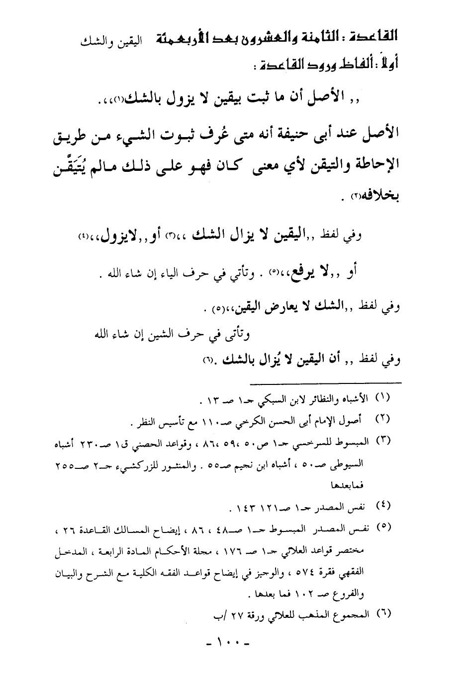 (¬5) نفس المصدر المبسوط جـ 1 صـ 48، 86، إيضاح المسالك القاعدة 26، مختصر قواعد العلائي جـ 1 صـ 176، مجلة الأحكام المادة الرابعة، المدخل الفقهي فقرة 574، والوجيز في إيضاح قواعد الفقه الكلية مع الشرح والبيان والفروع صـ 102 فما بعدها.