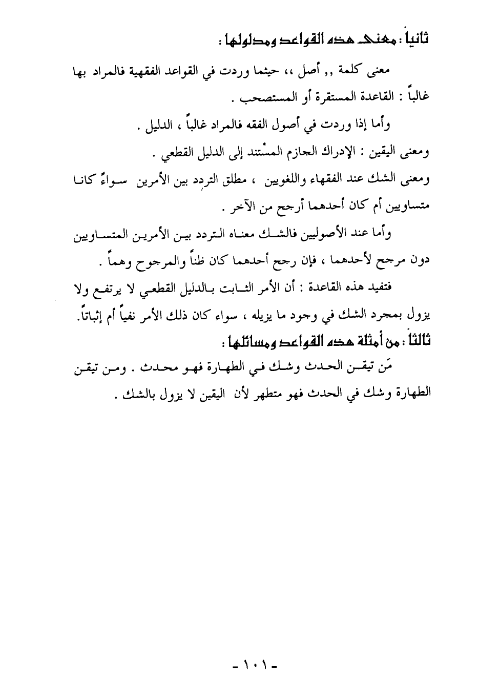 ثالثاً: من أمثلة هذه القواعد ومسائلها: