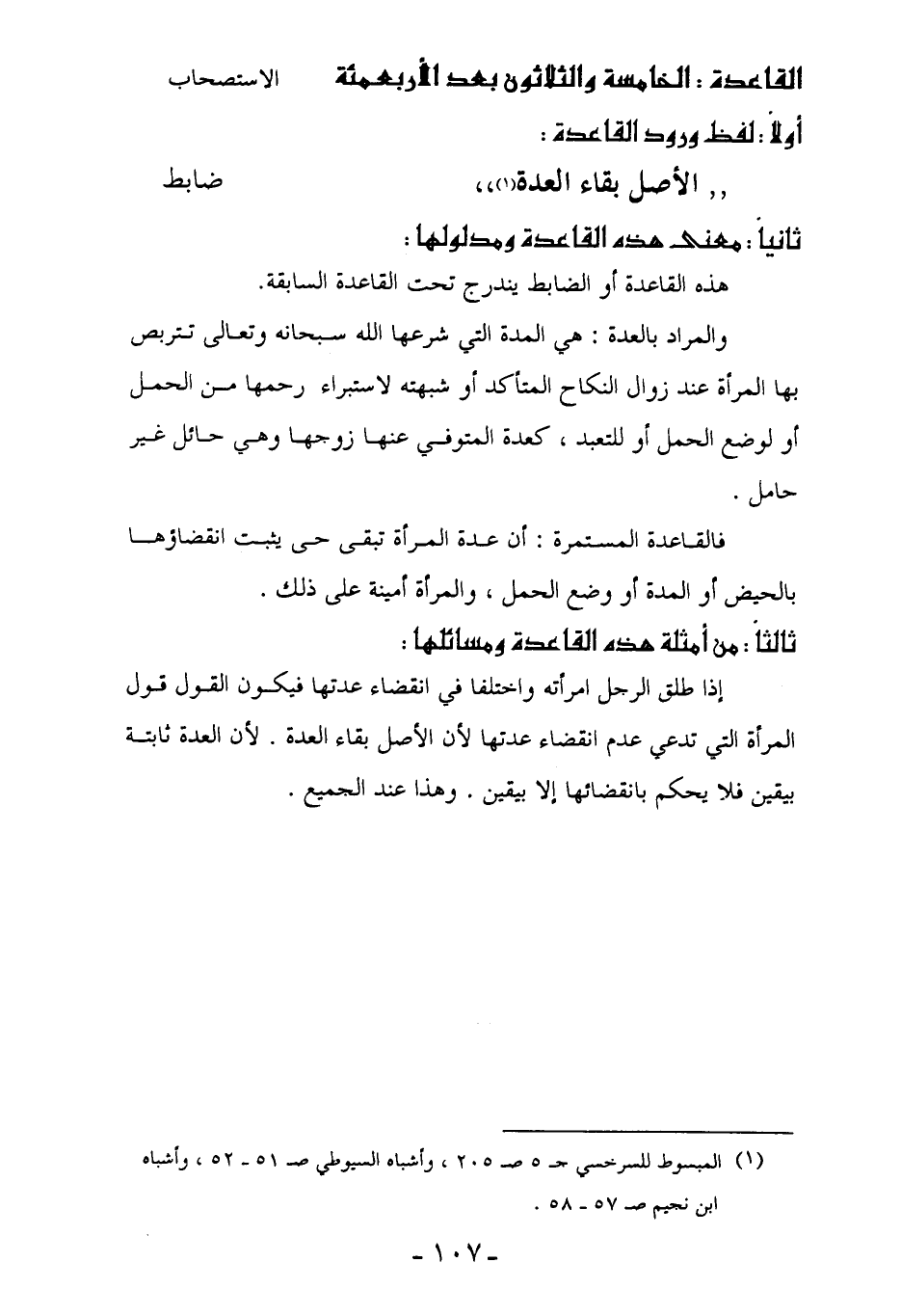 (¬1) المبسوط للسرخسي جـ 5 صـ 205، وأشباه السيوطي صـ 51 - 52، وأشباه ابن نجيم صـ 57 - 58.