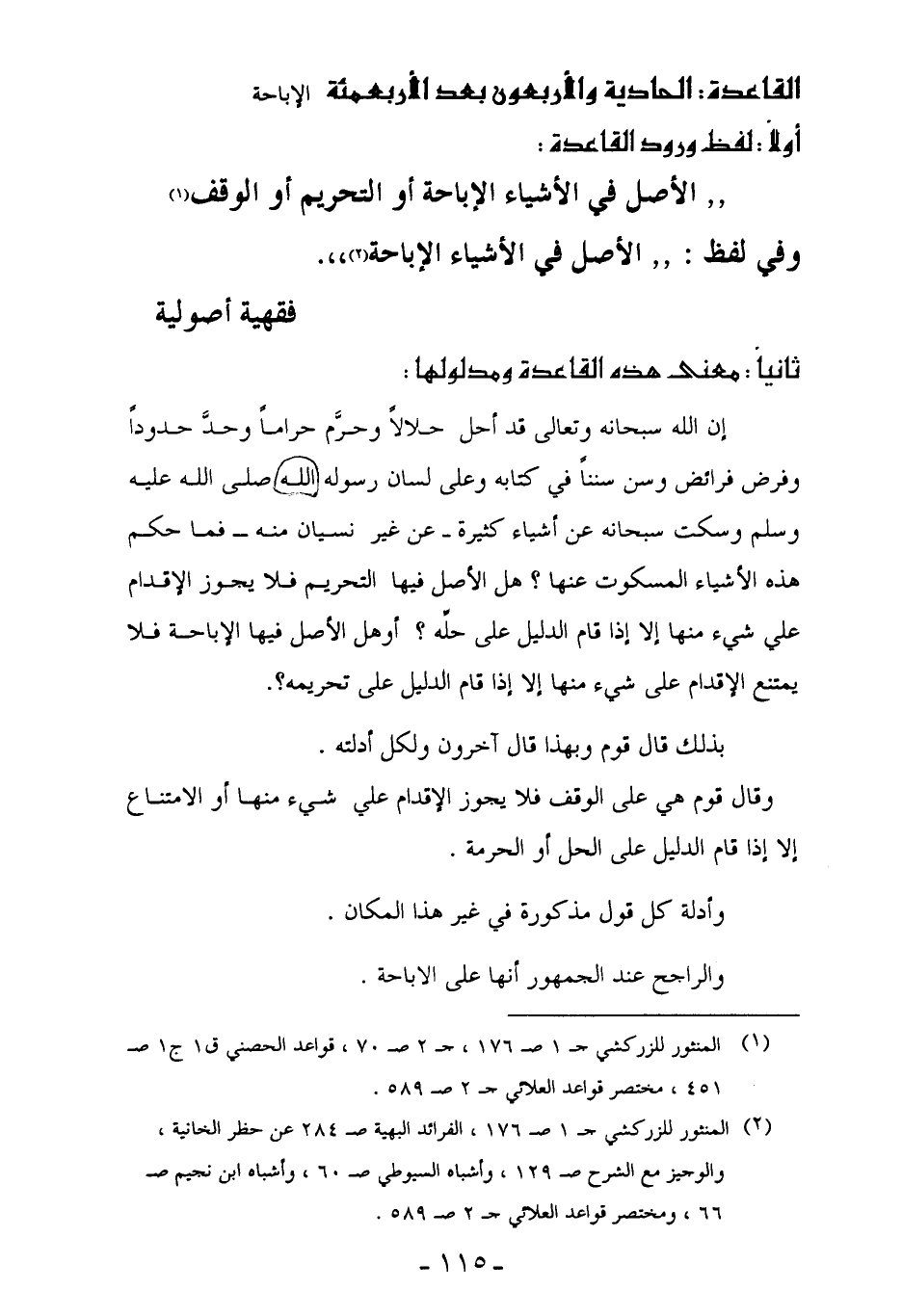 (¬2) المنثور للزركشي جـ 1 صـ 176، الفرائد البهية صـ 284 عن حظر الخانية، والوجيز مع الشرح صـ 129، وأشباه السيوطي صـ 60، وأشباه ابن نجيم صـ 66، ومختصر قواعد العلائي جـ 2 صـ 589.