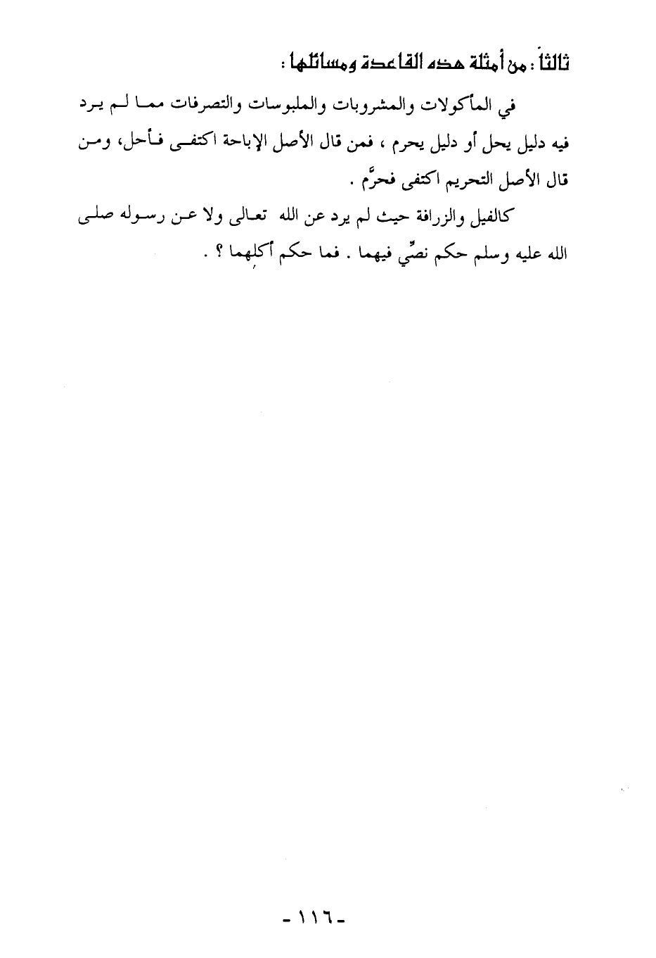 كالفيل والزرافة حيث لم يرد عن الله تعالى ولا عن رسوله صلى الله عليه وسلم حكم نصِّي فيهما. فما حكم أكلهما؟.