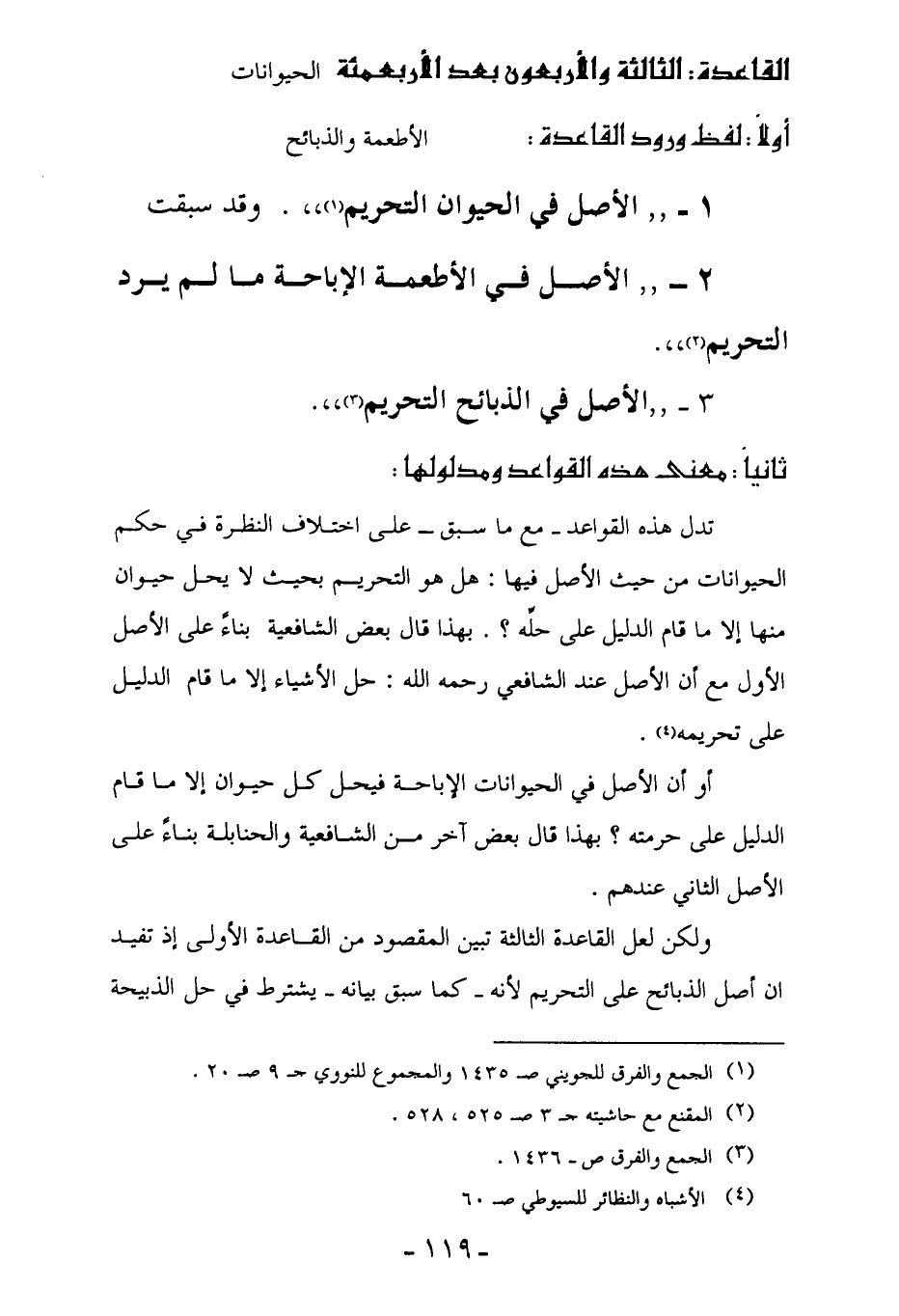 1 - " الأصل في الحيوان التحريم (¬1) ". وقد سبقت