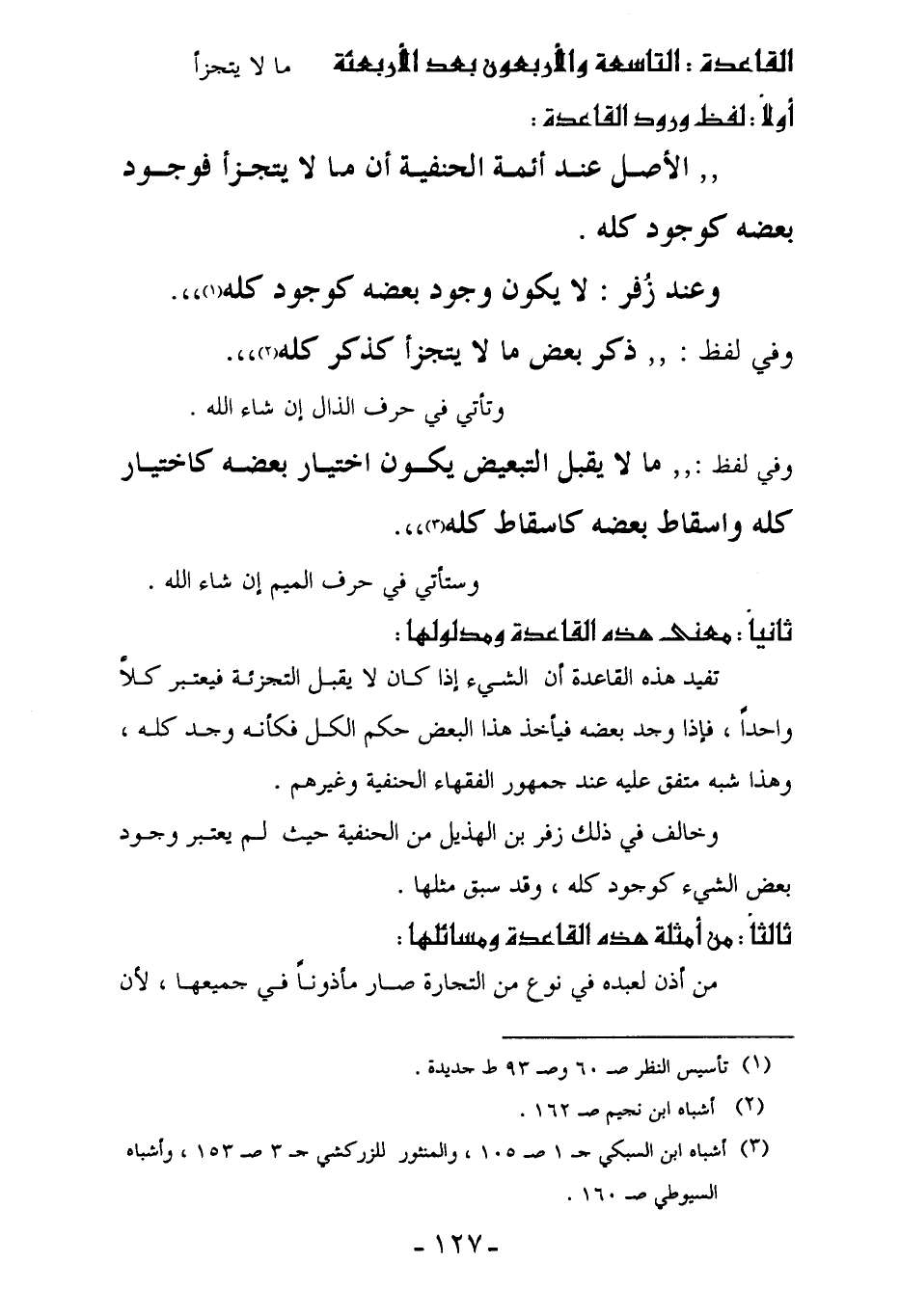(¬3) أشباه ابن السبكي جـ 1 صـ 105، والمنثور للزركشي جـ 3 صـ 153، وأشباه السيوطي صـ 160.