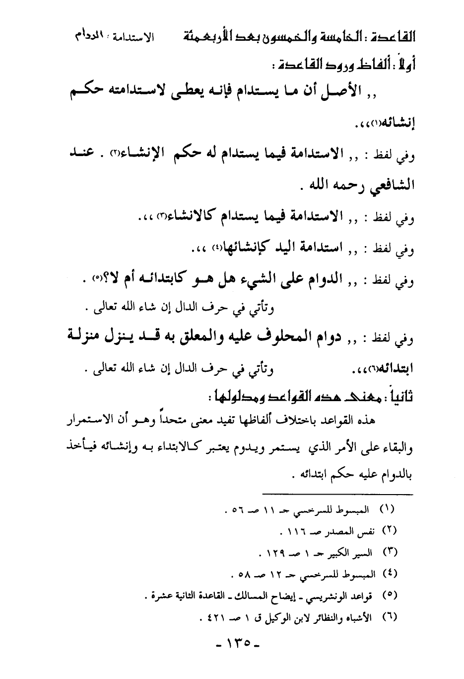 وفي لفظ: "دوام المحلوف عليه والمعلق به قد ينزل منزلة ابتدائه (¬6) ". وتأتي في حرف الدال إن شاء الله تعالى.