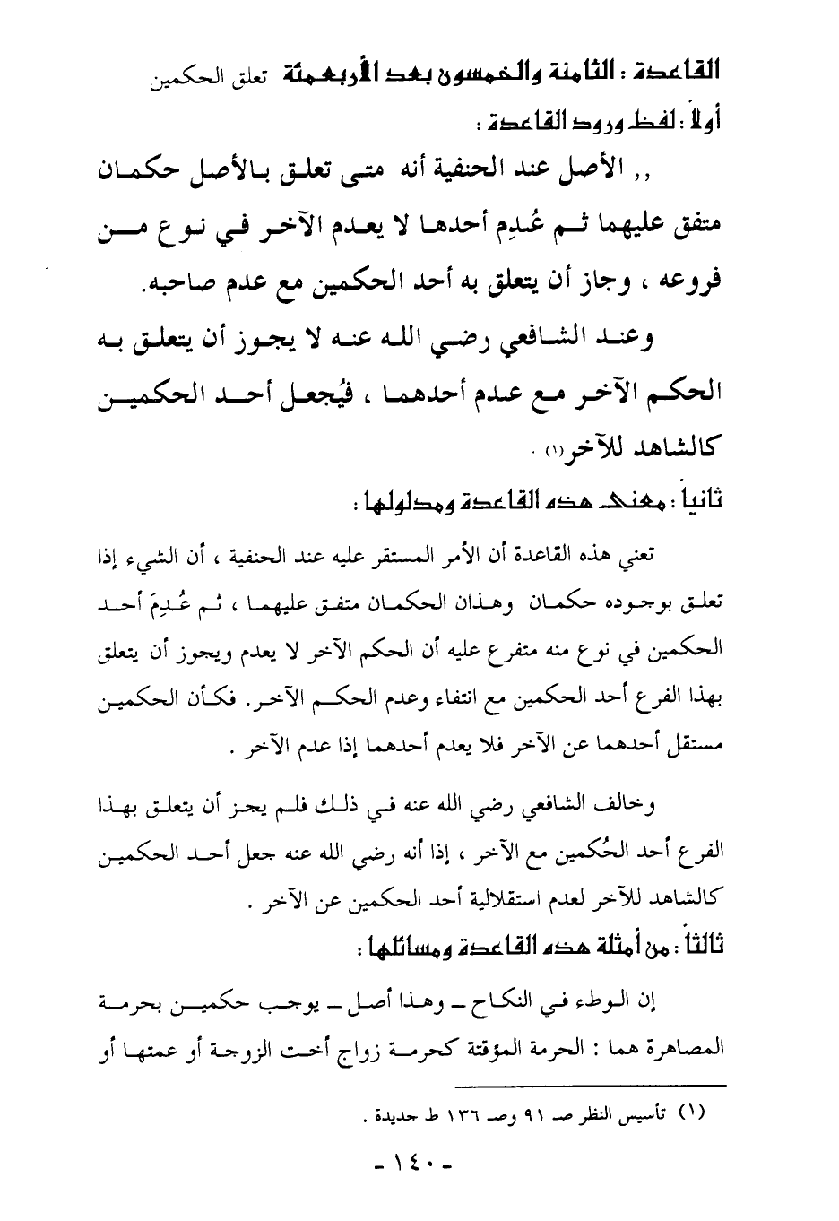 القاعدة: الثامنة والخمسون بعد الأربعمئة [تعلق الحكمين]