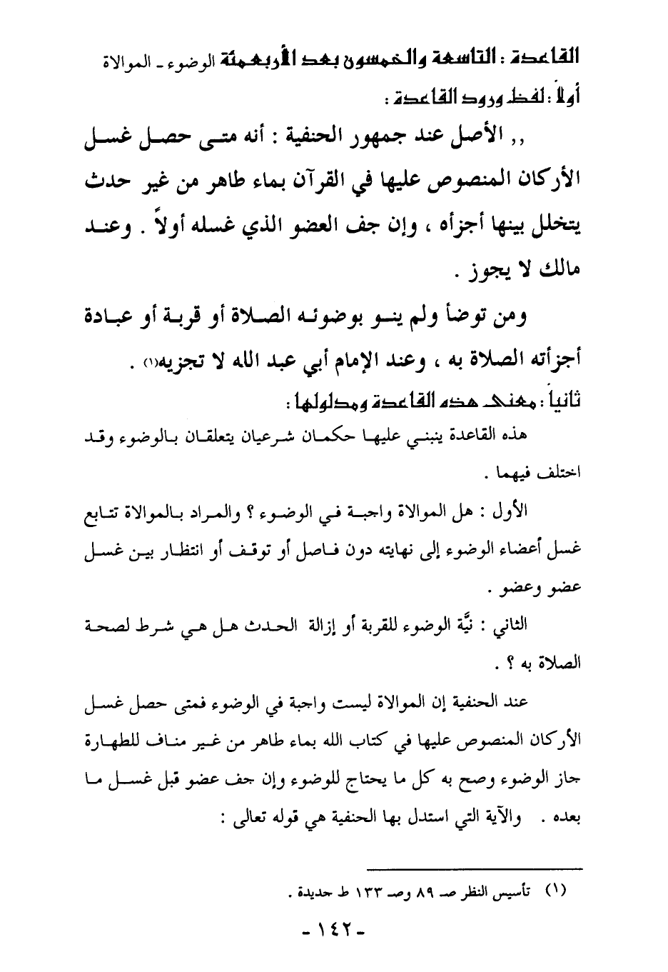 القاعدة: التاسعة والخمسون بعد الأربعمئة [الوضوء - الموالاة]