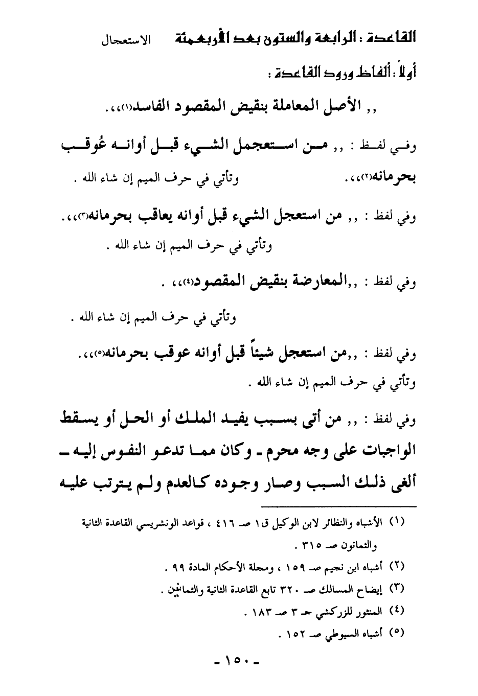 (¬1) الأشباه والنظائر لابن الوكيل ق 1 صـ 416، قواعد الونشريسي القاعدة الثانية والثمانون صـ 315.