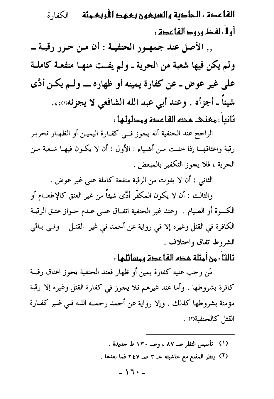 " الأصل عند جمهور الحنفية: أن من حرر رقبة - ولم يكن فيها شعبة من الحرية - ولم يفت منها منفعة كاملة على غير عوض - عن كفارة يمينه أو ظهاره - ولم يكن أدَّى شيئاً - أجزأه. وعند أبي عبد الله الشافعي لا يجزئه (¬1) ".
