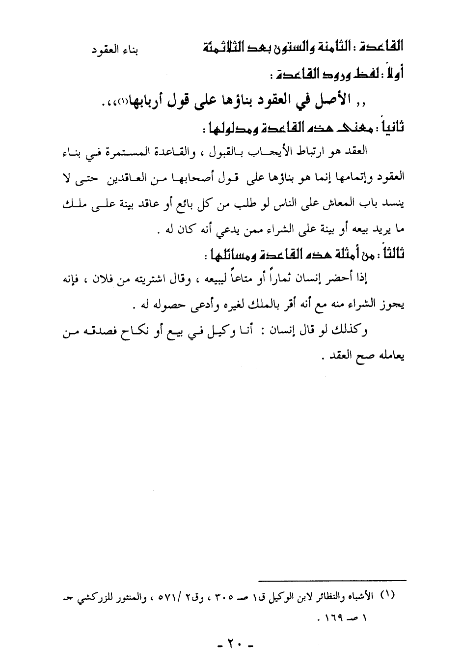 (¬1) الأشباه والنظائر لابن الوكيل ق 1 صـ 305، وق 2/ 571، والمنثور للزركشي جـ 1 صـ 169.