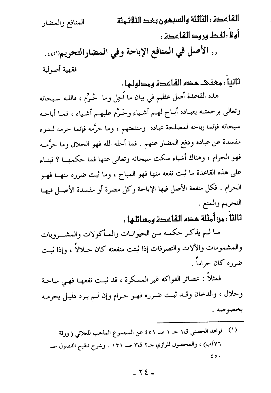 القاعدة: الثالثة والسبعون بعد الثلاثمئة [المنافع والمضار]