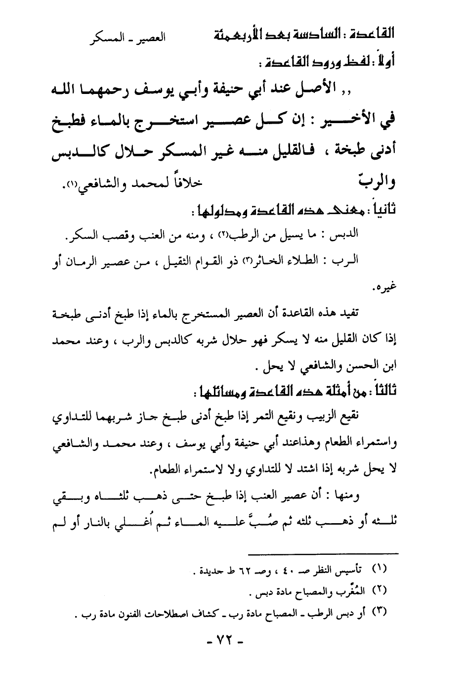 القاعدة: السادسة بعد الأربعمئة [العصير - المسكر]