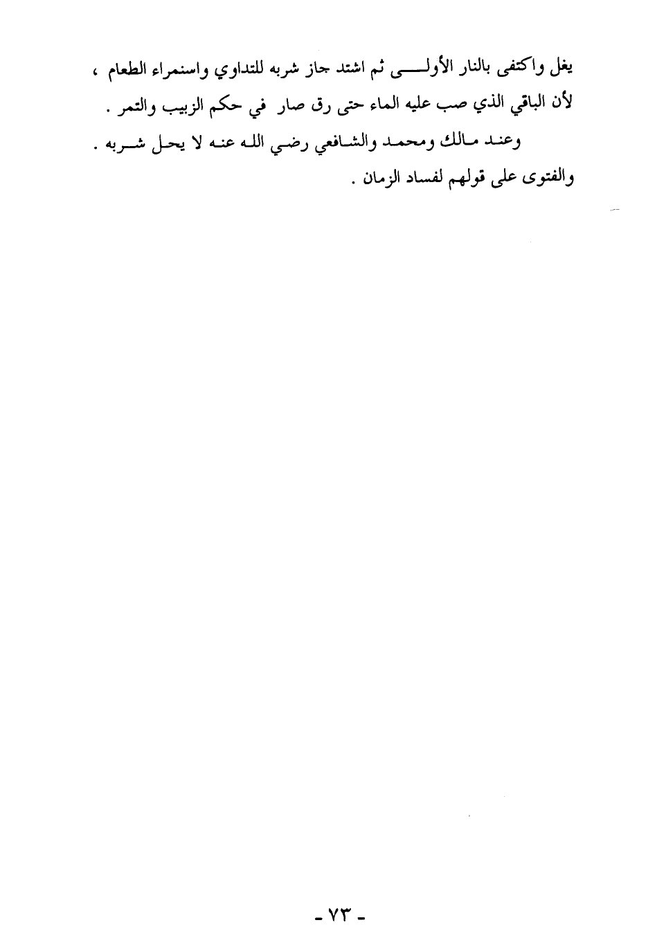 وعند مالك ومحمد والشافعي رضي الله عنه لا يحل شربه. والفتوى على قولهم لفساد الزمان.
