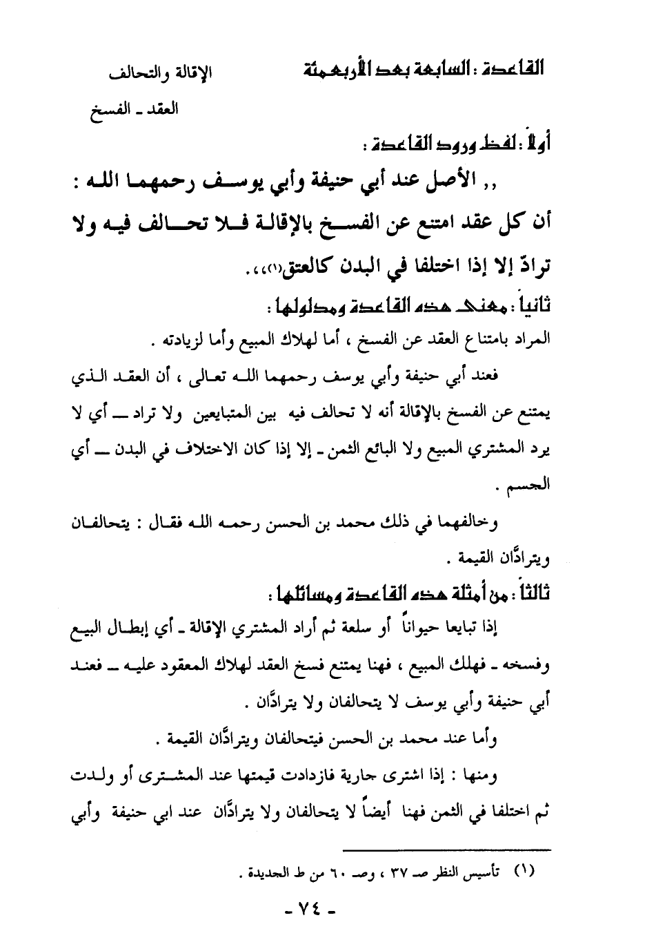 القاعدة: السابعة بعد الأربعمئة [الإقالة والتحالف - العقد - الفسخ]