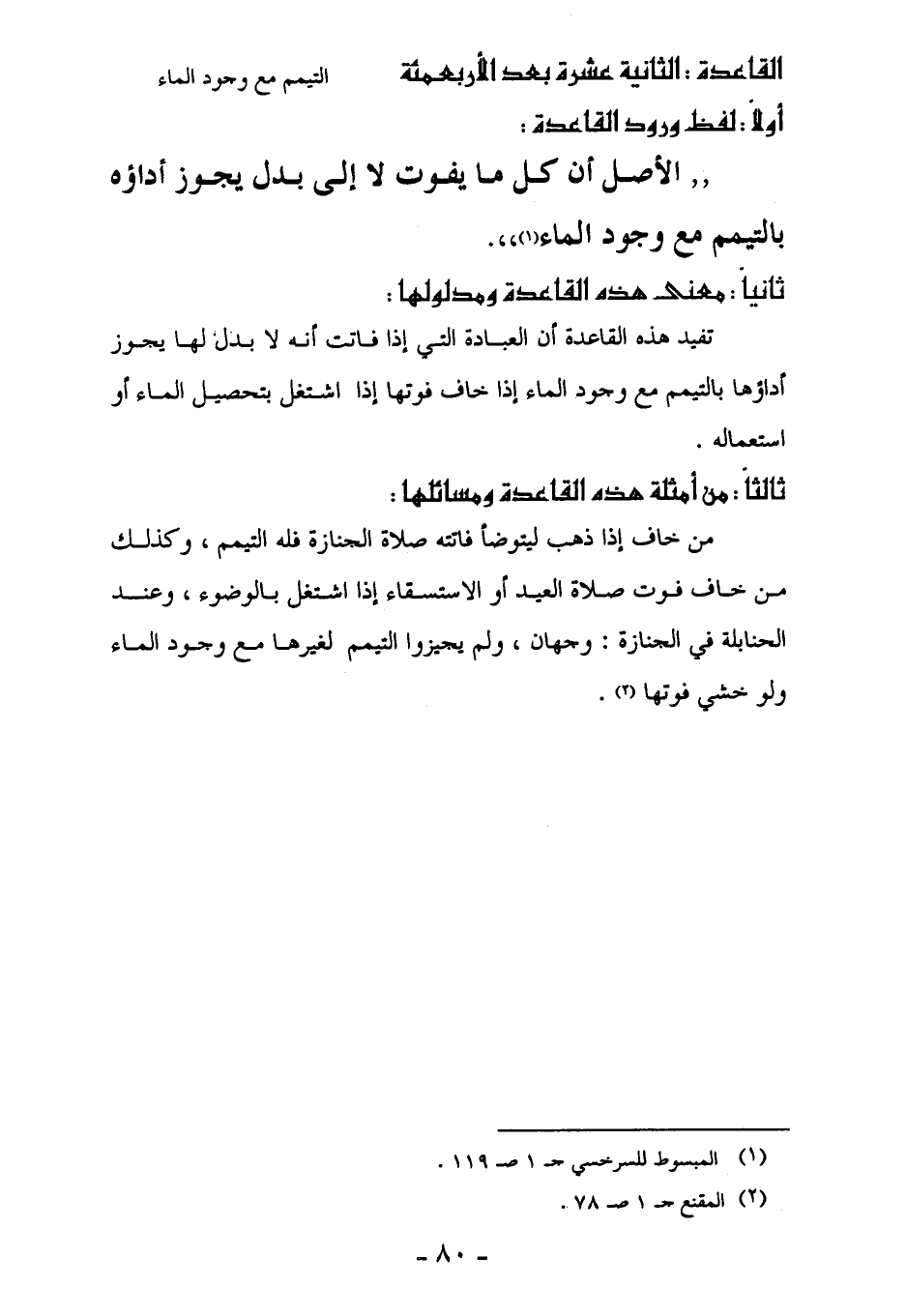 القاعدة: الثانية عشرة بعد الأربعمئة [التيمم مع وجود الماء]