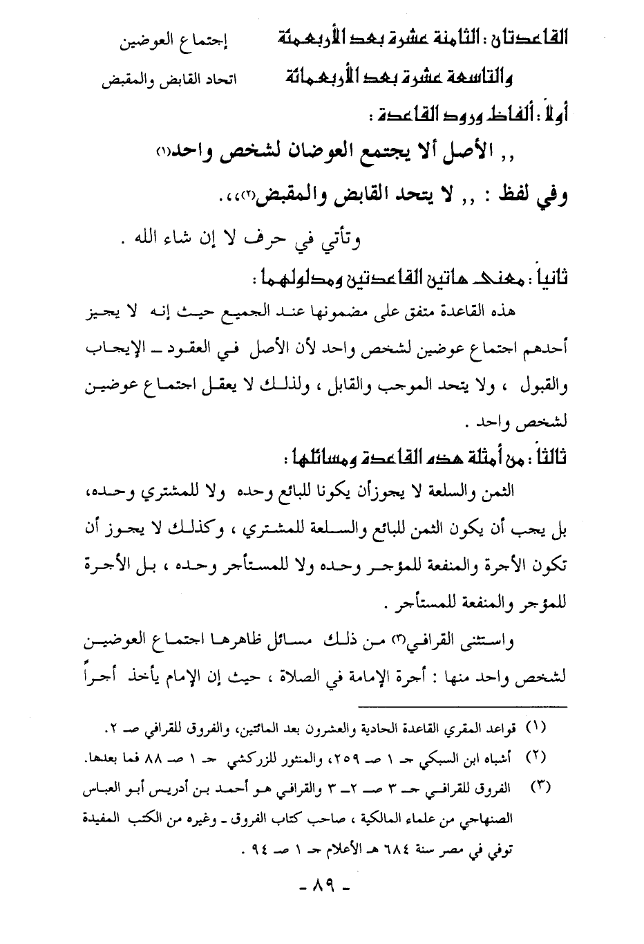 (¬1) قواعد المقري القاعدة الحادية والعشرون بعد المائتين، والفروق للقرافي صـ 2.