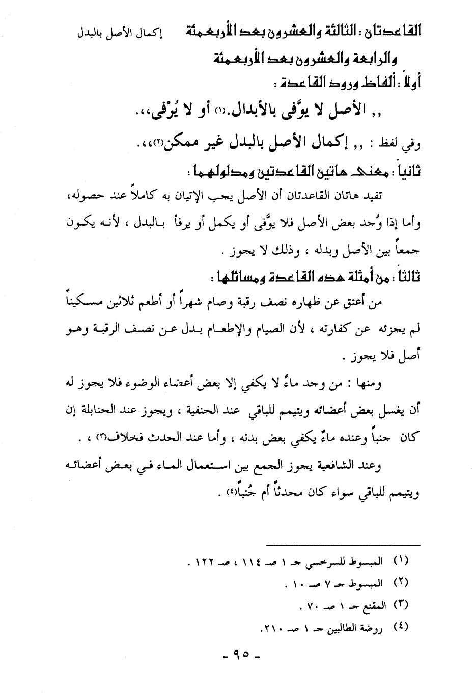 القاعدتان: الثالثة والعشرون بعد الأربعمئة والرابعة والعشرون بعد الأربعمئة [إكمال الأصل بالبدل]