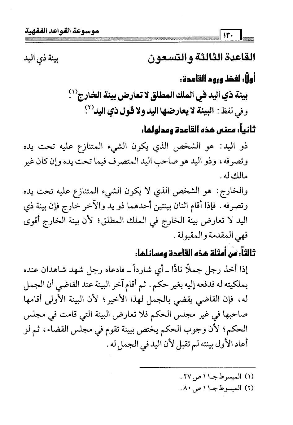 القاعدة الثالثة والتسعون [بينة ذي اليد]