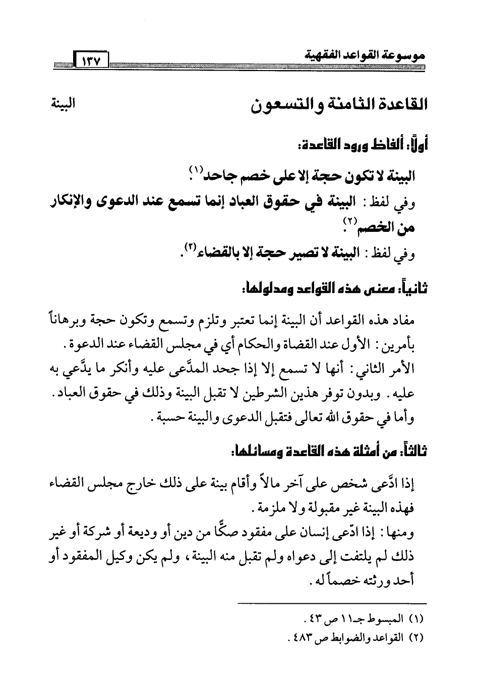 مفاد هذه القواعد أن البينة إنما تعتبر وتلزم وتسمع وتكون حجة وبرهاناً بأمرين: الأول عند القضاة والحكام أي في مجلس القضاء عند الدعوة.