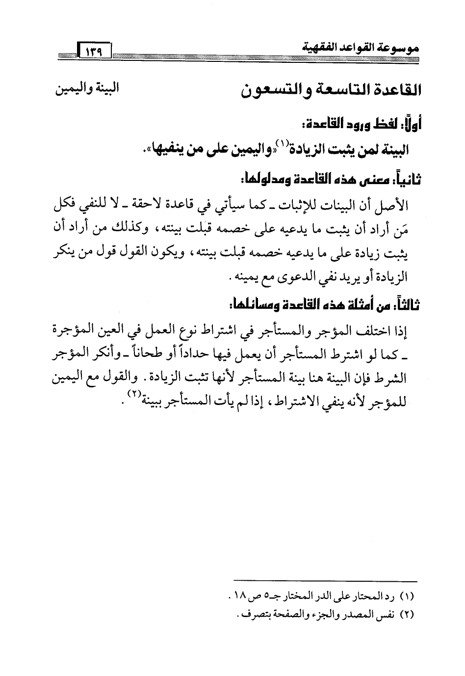 القاعدة التاسعة والتسعون [البينة واليمين]