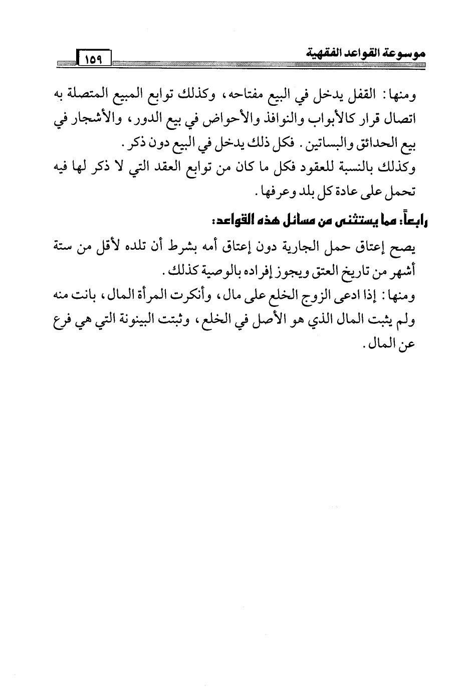 رابعاً: مما يستثنى من مسائل هذه القواعد: