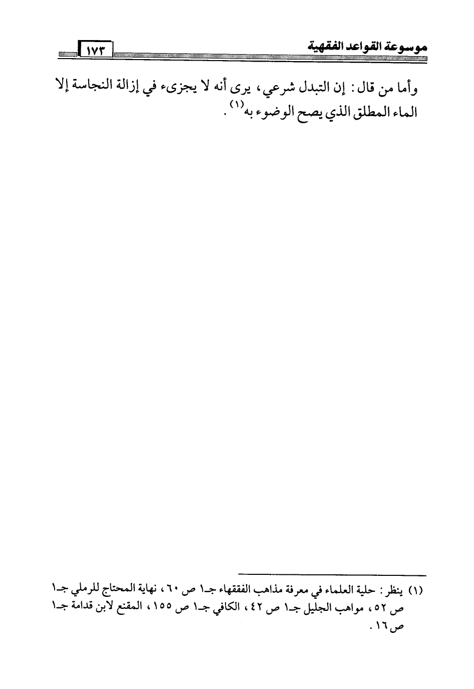 (¬1) ينظر: حلية العلماء في معرفة مذاهب الفقهاء جـ 1 ص 60، نهاية المحتاج للرملي جـ 1 ص 52، مواهب الجليل جـ 1 ص 42، الكافي جـ 1 ص 155، المقنع لابن قدامة جـ 1 ص 16.