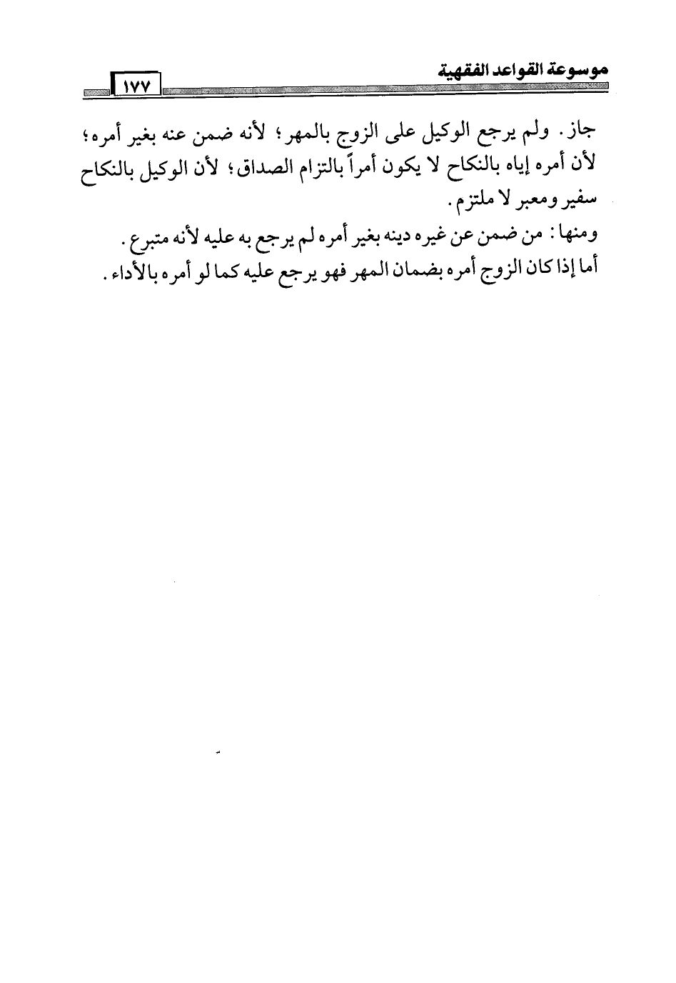 ومنها: من ضمن عن غيره دينه بغير أمره لم يرجع به عليه لأنه متبرع. أما إذا كان الزوج أمره بضمان المهر فهو يرجع عليه كما لو أمره بالأداء.
