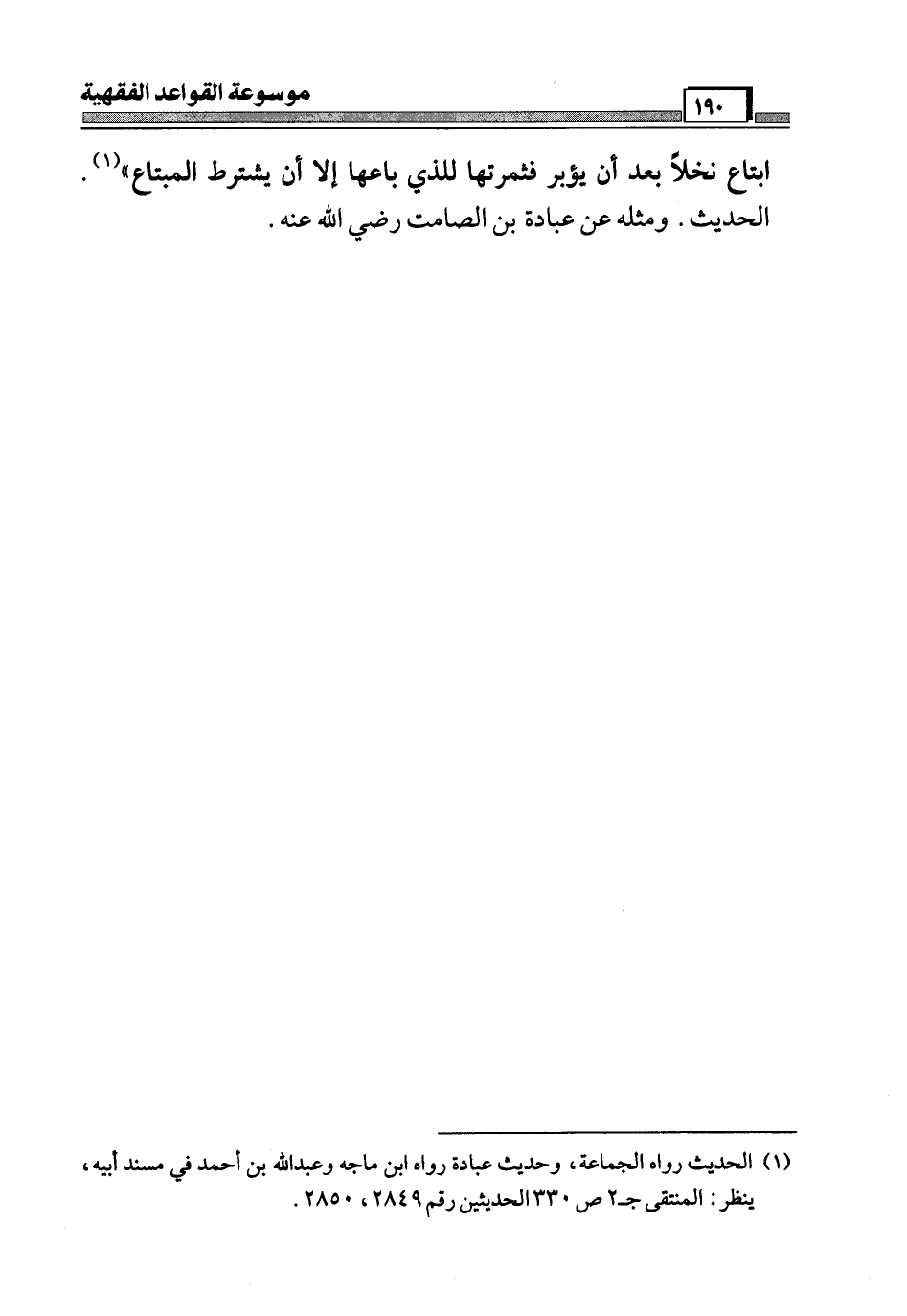 ابتاع نخلاً بعد أن يؤبر فثمرتها للذي باعها إلا أن يشترط المبتاع" (¬1). الحديث. ومثله عن عبادة بن الصامت رضي الله عنه.