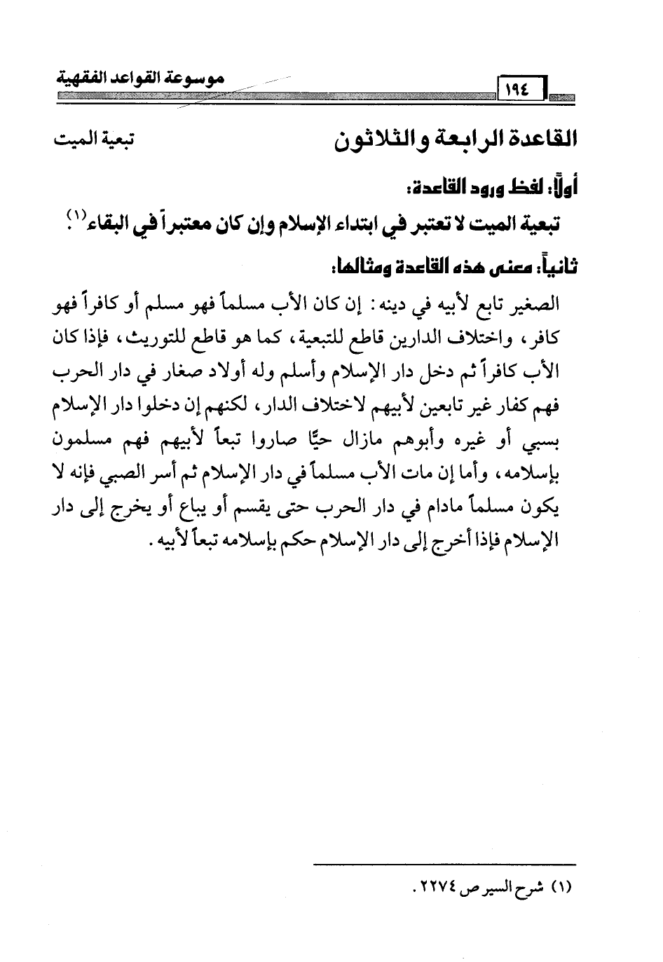 القاعدة الرابعة والثلاثون [تبعية الميت]