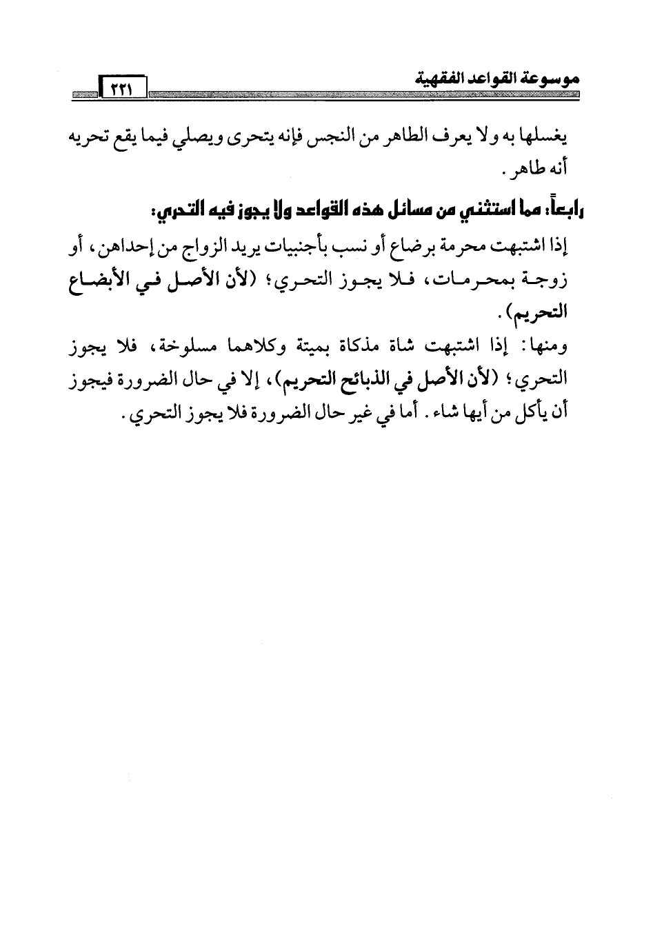رابعاً: مما استثني من مسائل هذه القواعد ولا يجوز فيه التحري: