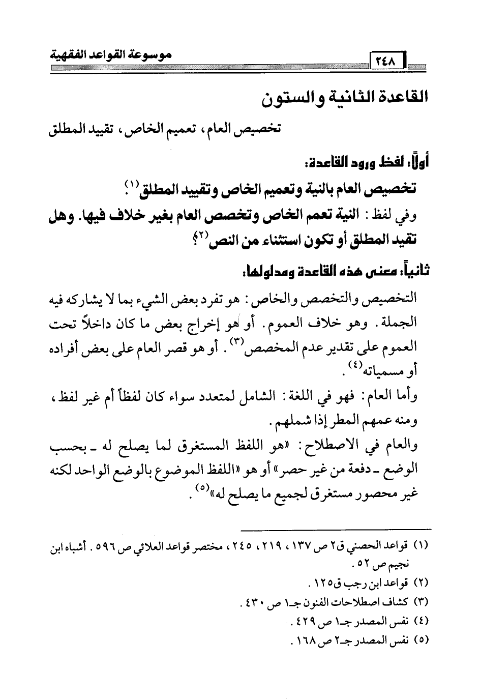 (¬1) قواعد الحصني ق 2 ص 137، 219، 245، مختصر قواعد العلائي ص 596. أشباه ابن نجيم ص 52.