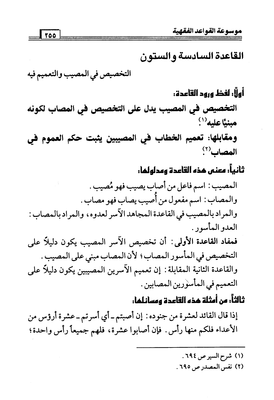 القاعدة السادسة والستون [التخصيص في المصيب والتعميم فيه]