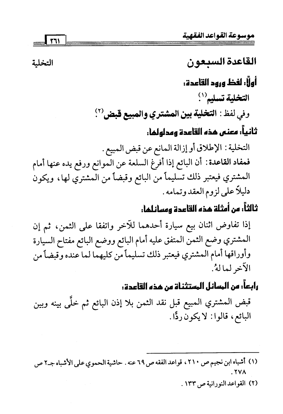 (¬1) أشباه ابن نجيم ص 210، قواعد الفقه ص 69 عنه. حاشية الحموي على الأشباه جـ 2 ص 278.