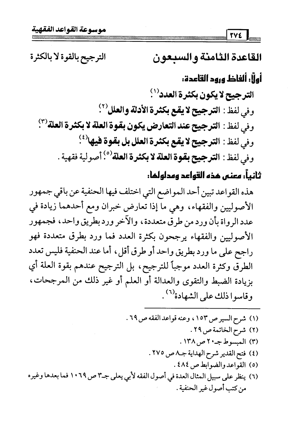 وفي لفظ: الترجيح بقوة العلة لا بكثرة العلة (¬5). أصولية فقهية.