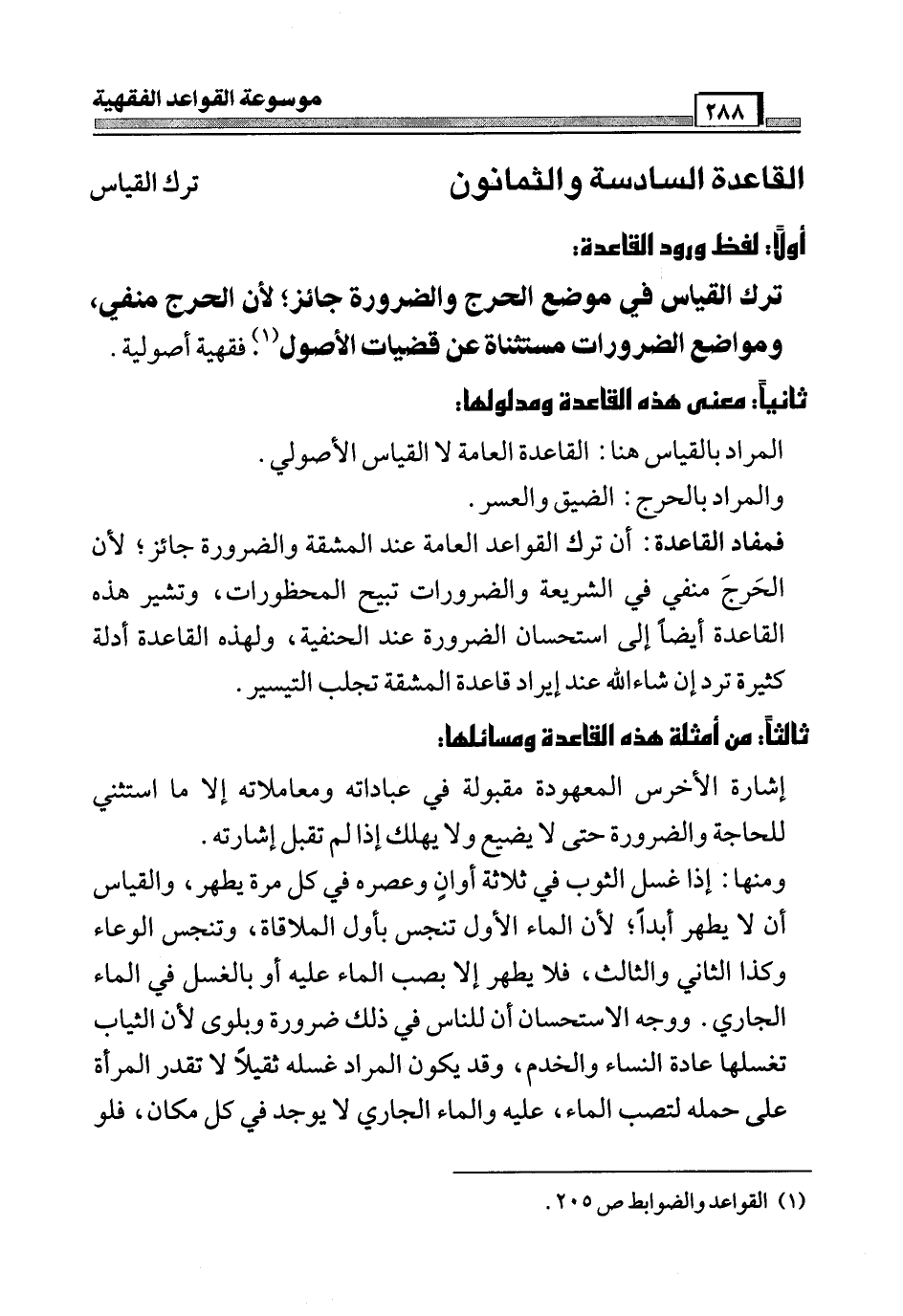 ترك القياس في موضع الحرج والضرورة جائز؛ لأن الحرج منفي، ومواضع الضرورات مستثناة عن قضيات الأصول (¬1). فقهية أصولية.