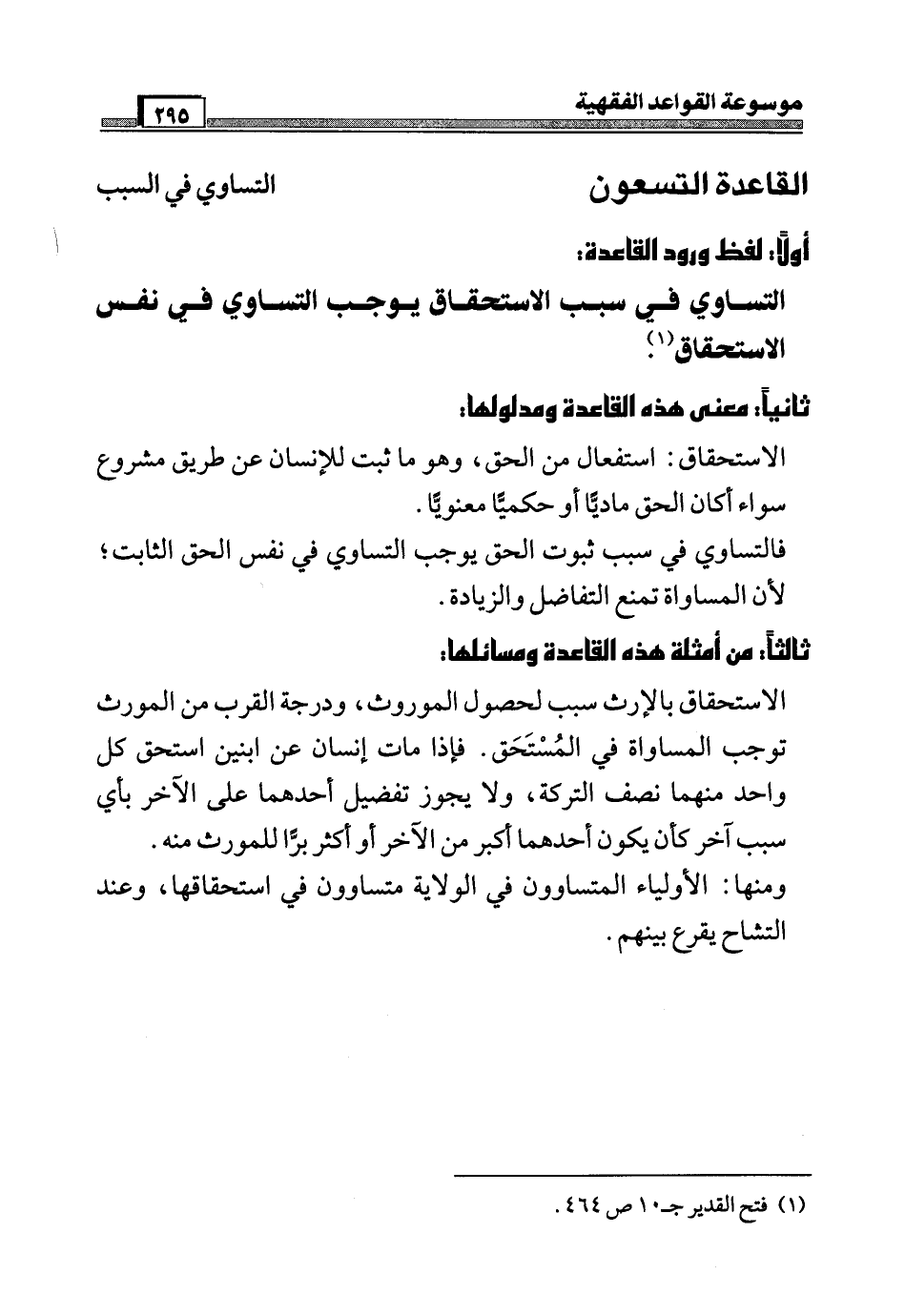 التساوي في سبب الاستحقاق يوجب التساوي في نفس الاستحقاق (¬1).