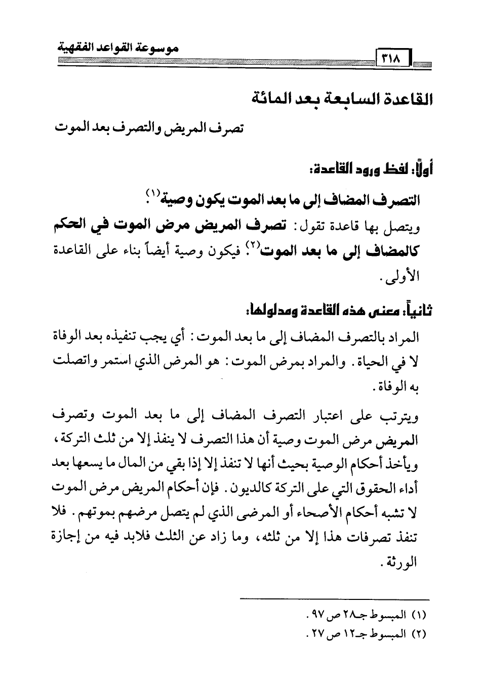 القاعدة السابعة بعد المائة [تصرف المريض والتصرف بعد الموت]