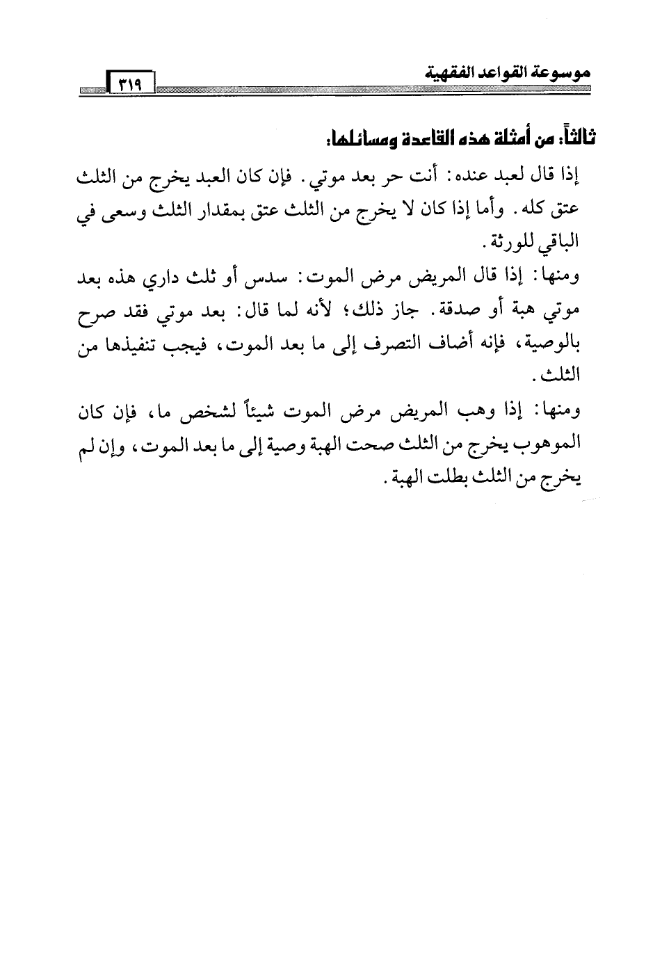 ثالثاً: من أمثلة هذه القاعدة ومسائلها:
