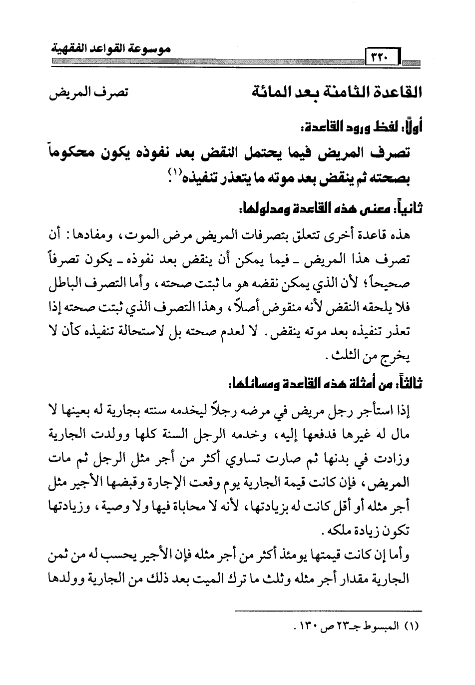 القاعدة الثامنة بعد المائة [تصرف المريض]