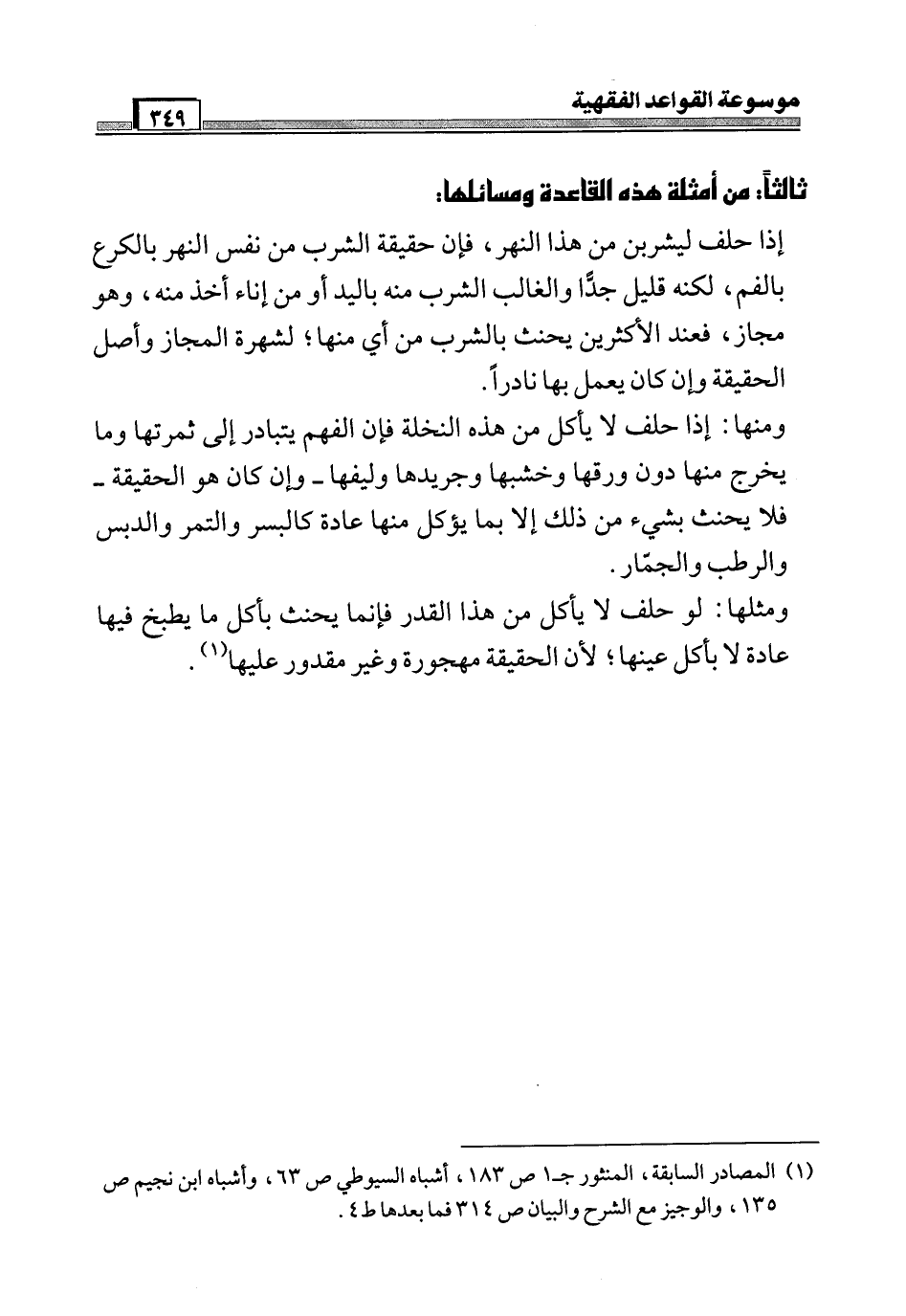 (¬1) المصادر السابقة، المنثور جـ 1 ص 183، أشباه السيوطي ص 63، وأشباه ابن نجيم ص 135، والوجيز مع الشرح والبيان ص 314 فما بعدها ط 4.