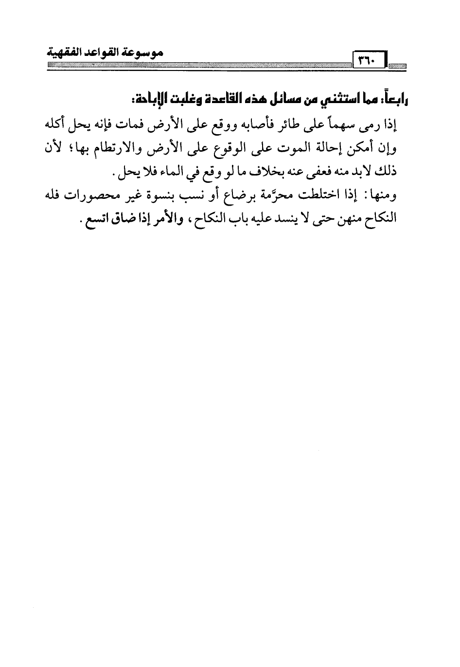 رابعاً: مما استثني من مسائل هذه القاعدة وغلبت الإباحة: