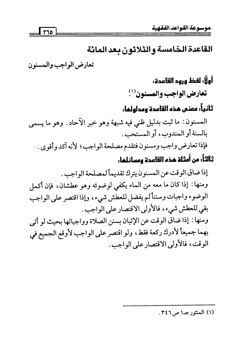 القاعدة الخامسة والثلاثون بعد المائة [تعارض الواجب والمسنون]