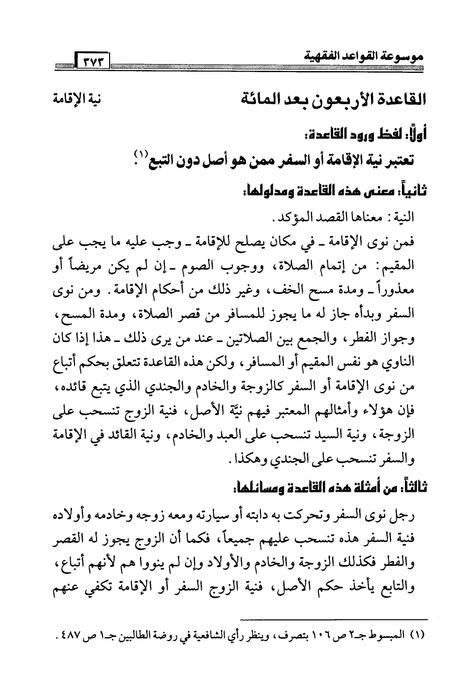 القاعدة الأربعون بعد المائة [نية الإقامة]