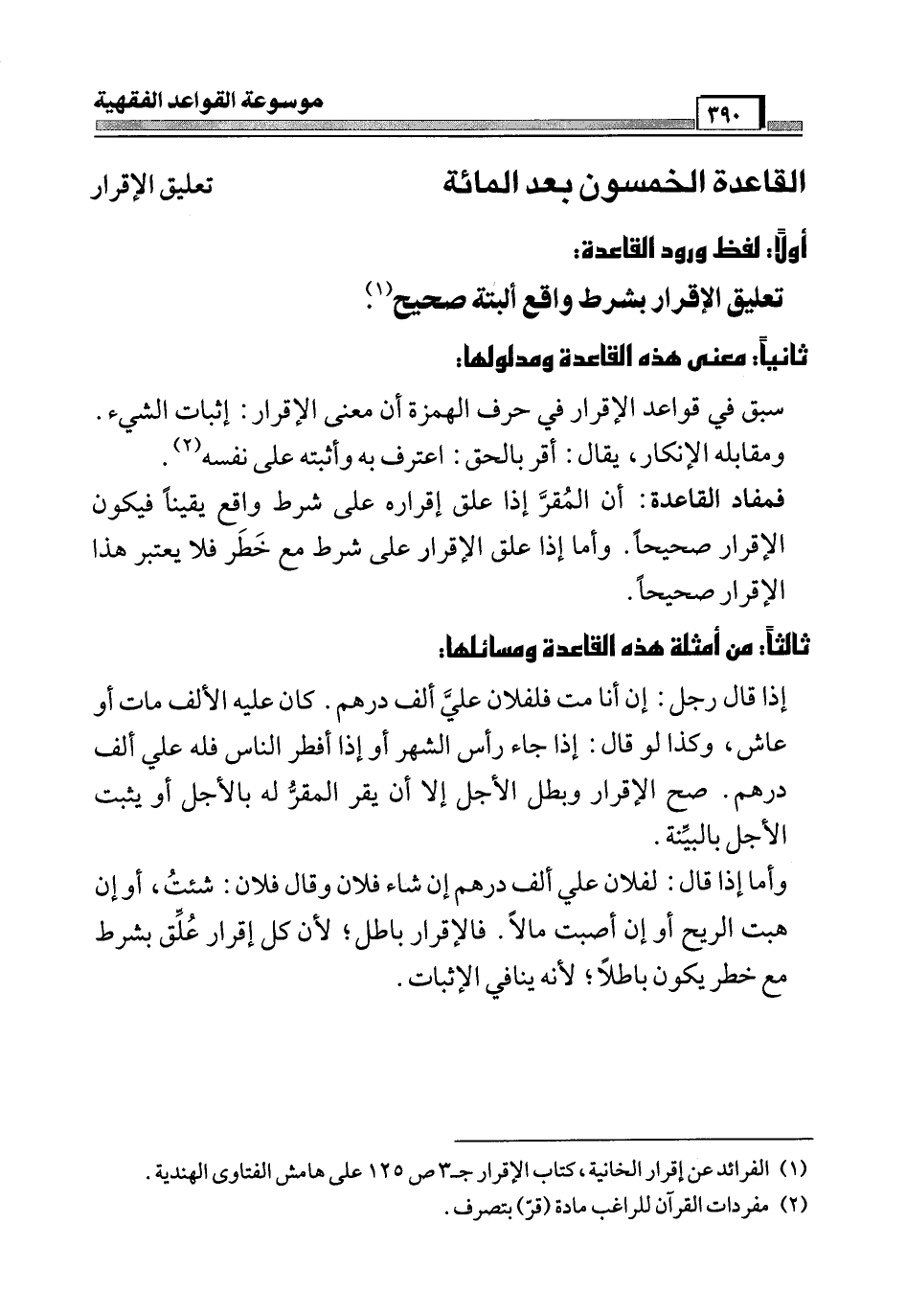 القاعدة الخمسون بعد المائة [تعليق الإقرار]