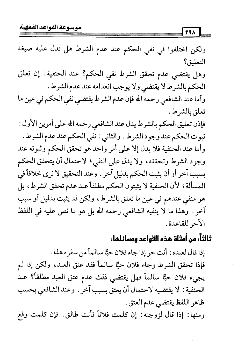 ثالثاً: من أمثلة هذه القواعد ومسائلها: