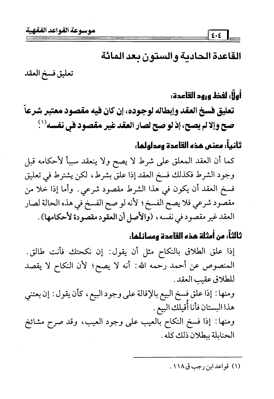 القاعدة الحادية والستون بعد المائة [تعليق فسخ العقد]
