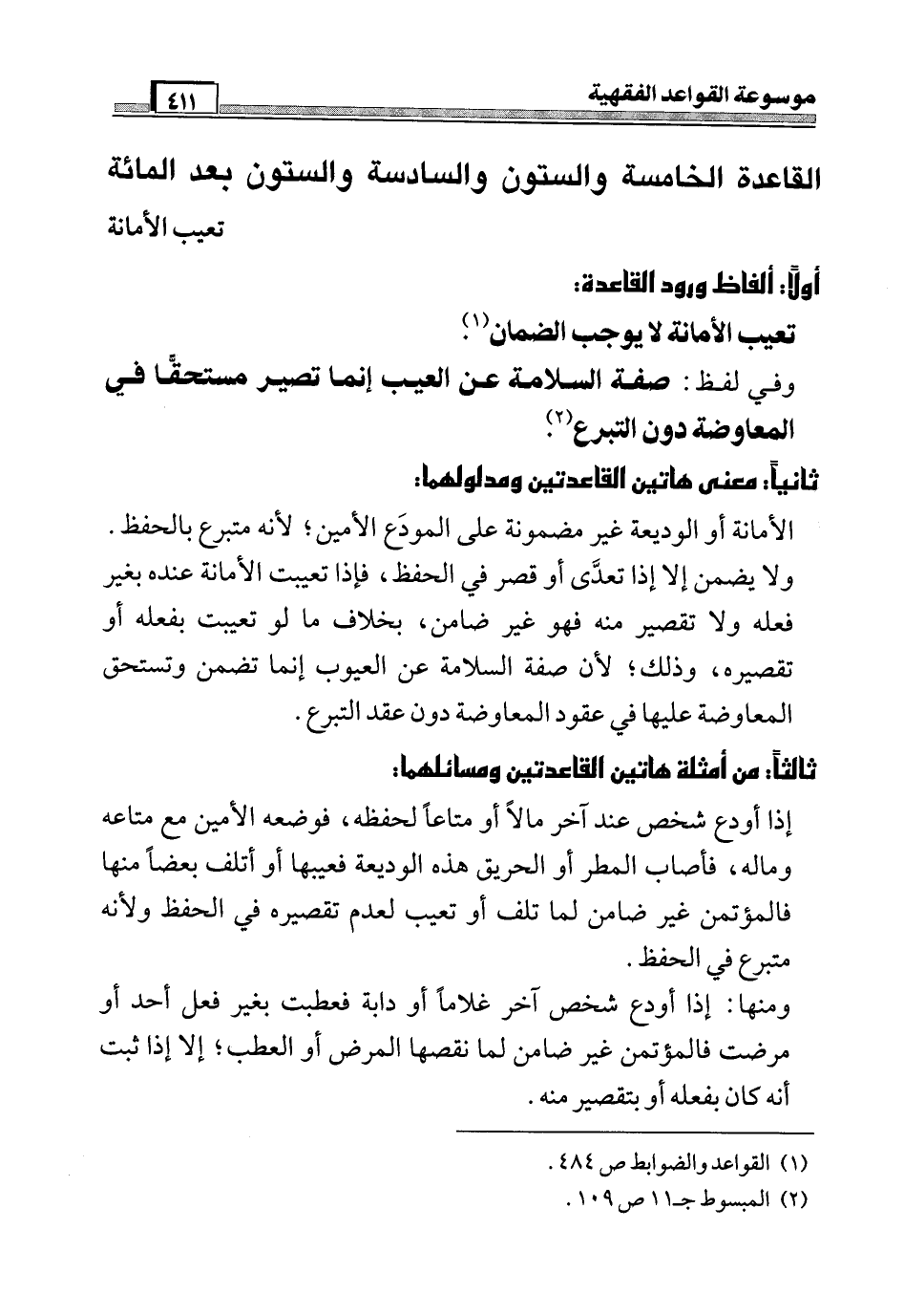 القاعدة الخامسة والستون والسادسة والستون بعد المائة [تعيب الأمانة]